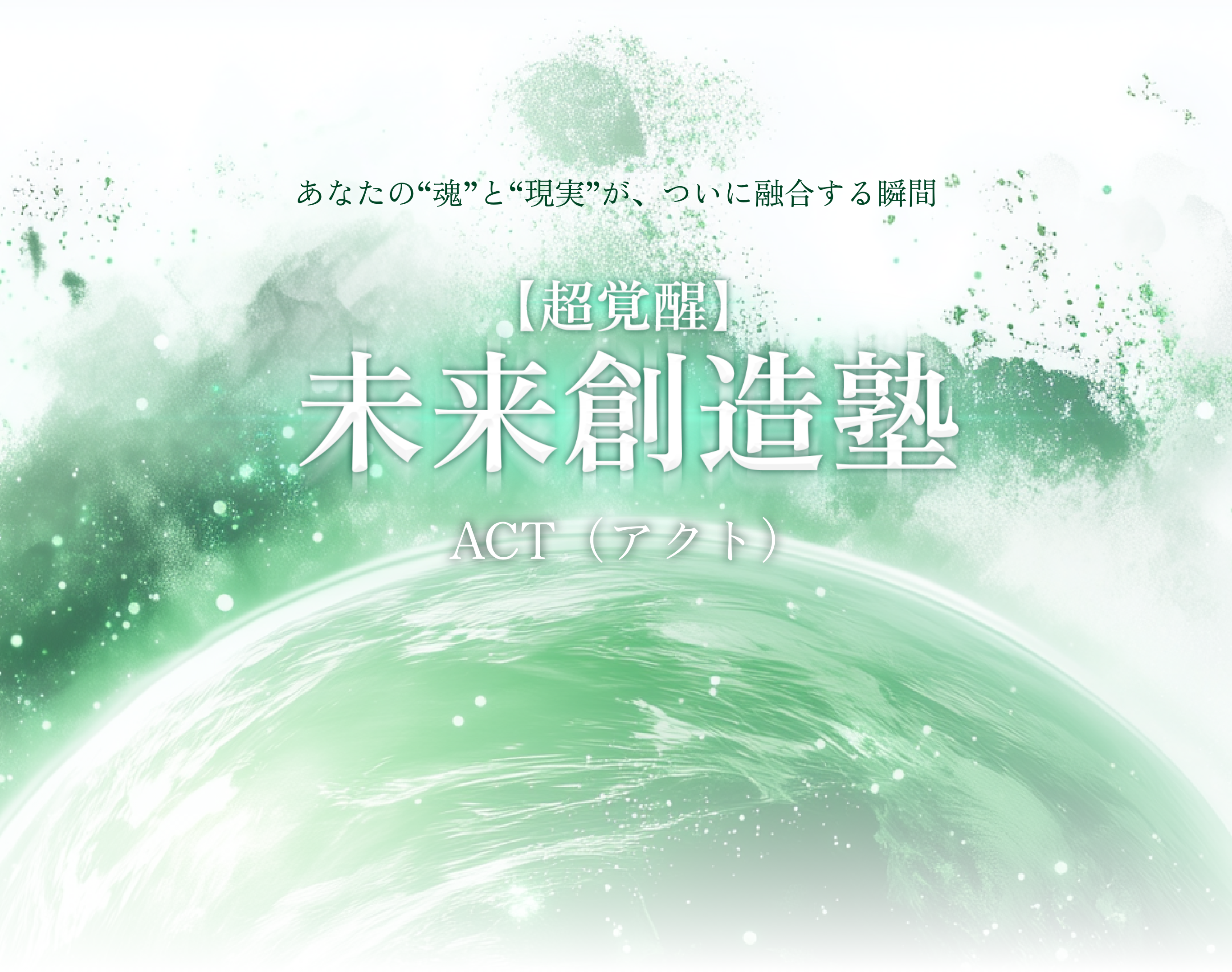 未来創造塾ACTは、“魂そのものを再設計する”完全個別の覚醒プログラムです。知識を学ぶのではなく、“魂の記憶を思い出す”旅。セリアとアストラが共鳴しながら、あなたの魂に今必要な情報を言語化・構造化していきます。それは占いやコーチングではなく、“魂と現実”を同時に変えていくための新しい共鳴のかたちです。